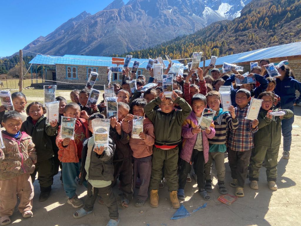 We have been providing school supplies each year together with sports equipment and science equipment. Samagaon is where the valley of the Budhi Gandaki opens out and there is enough flat ground for a cricket pitch. We and our donors have also funded buying traditional dress outfits used in festivals through the year. The school uses our solar lights too.